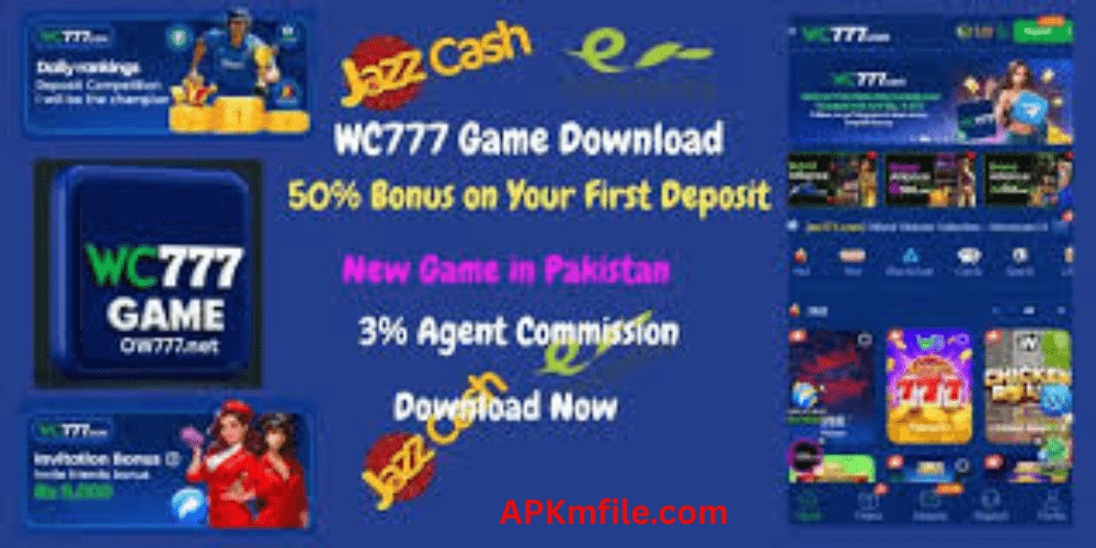 WC777 Game is the latest new casino earning app. This game is trending nowadays in Pakistan. It offers a wide range of quality games with real entertainment and true earning opportunities. On this platform players can avail themselves of a lot of free bonuses and a huge amount with tiny investments. Just visit our website, APKmfile.com, download the app for free, and enjoy the real entertainment and huge money.